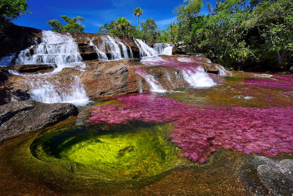 Ένα μοναδικό στον κόσμο ποτάμι, που ξεχωρίζει από τα πολλά του χρώματα. Βρίσκεται στη Νότια Αμερική, στην Κολομβία, κοντά στην πόλη La Macarena.Εκεί, μπορεί να συναντήσει κανείς σπάνιες και πολύχρωμες ποικιλίες φυκιών. Τα χρώματά τους αλλάζουν με τη μεταβολή της θερμοκρασίας του νερού, μ’ αποτέλεσμα να δημιουργείται κάθε φορά και μια διαφορετική μαγευτική εικόνα. Θα μπορούσε λοιπόν να πει κανείς ότι εδώ η φύση χάρισε απλόχερα όλη της την ομορφιά.