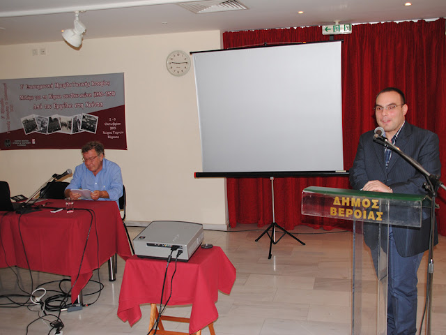 Στη εναρκτήρια συνεδρίαση, ανέπτυξε ομιλία σχετικά με την υπό εξέταση περίοδο ο ομ. Καθηγητής του ΕΚΠΑ, Ηλίας Νικολακόπουλος, ενώ στη συνέχεια παρουσιάστηκαν οπτικοακουστικά ντοκουμέντα της περιόδου, σχετικά με τη Βέροια, από τις Μαρία Χειμωνοπούλου, Ολυμπία Μπέτσα και Αναστασία Ταναμπάση.