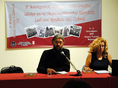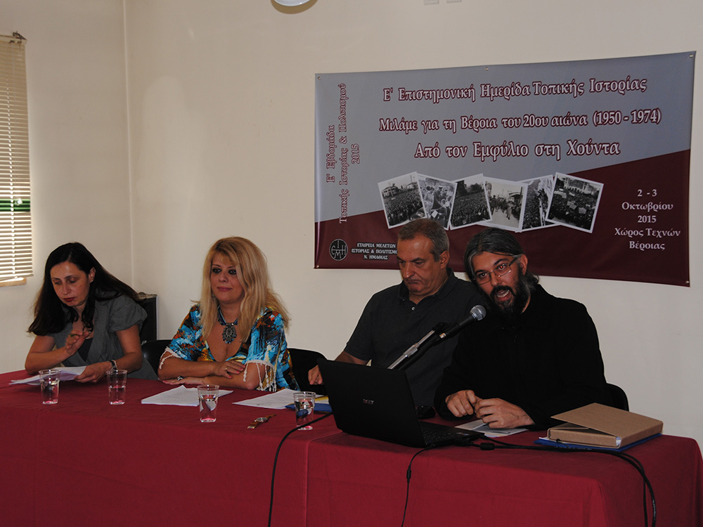 Το απόγευμα της Παρασκευής 2 Οκτωβρίου 2015 ξεκίνησε η Ε’ Επιστημονική Ημερίδα Τοπικής Ιστορίας «Μιλάμε για τη Βέροια του 20ου αιώνα (1950-1975) Από τον Εμφύλιο στη Χούντα», στο Χώρο Τεχνών Βέροιας (2ος όροφος).
