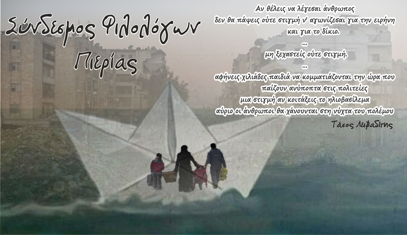 Από τον Σύνδεσμο Φιλολόγων Ν. Πιερίας μας στάλθηκε ανακοίνωση σχετικά με την διοργάνωση από τον Σύνδεσμο Παμπιερικού Λογοτεχνικού Διαγωνισμού για μαθητές Γυμνασίων και Λυκείων με θέμα: “Προσφυγιά και μετανάστευση”, την οποία και δημοσιεύουμε ευχαρίστως, ευχόμενοι καλή επιτυχία.