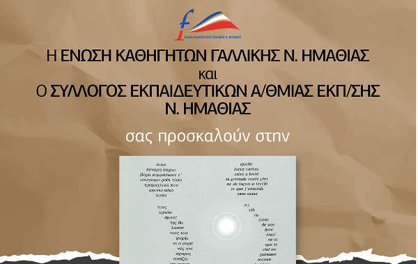 Η Ένωση Καθηγητών Γαλλικής Γλώσσας Ημαθίας και ο Σύλλογος Εκπαιδευτικών Α/θμιας Εκπ/σης Ημαθίας διοργανώνουν παρουσίαση βιβλίου του πανεπιστημιακού κ. Καμαρούδη Σταύρου, καθηγητή γλωσσολογίας του Πανεπιστημίου Δυτικής Μακεδονίας, με τίτλο
