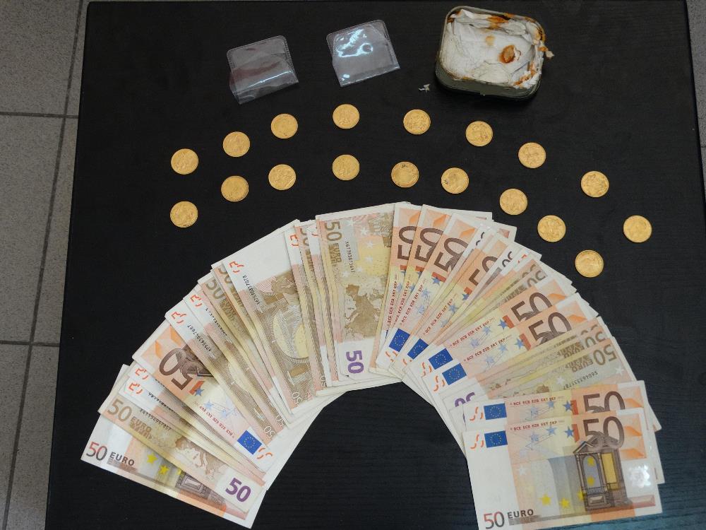 Στην κατοχή του 54χρονου βρέθηκαν 18 χρυσές λίρες, οι οποίες και αποδόθηκαν στην ιδιοκτήτρια, καθώς και το παραπάνω χρηματικό ποσό το οποίο κατασχέθηκε.