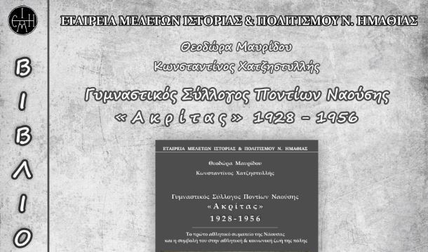 Η Εταιρεία Μελετών Ιστορίας και Πολιτισμού Ν. Ημαθίας προσκαλεί στην παρουσίαση του βιβλίου των Θεοδώρας Μαυρίδου & Κωνσταντίνου Χατζηστυλλή με τίτλο “Γυμναστικός Σύλλογος Ποντίων Ναούσης «Ακρίτας» 1928 – 1956”, που συνδιοργανώνει με το Δήμο Ηρωικής Πόλης Νάουσας.
