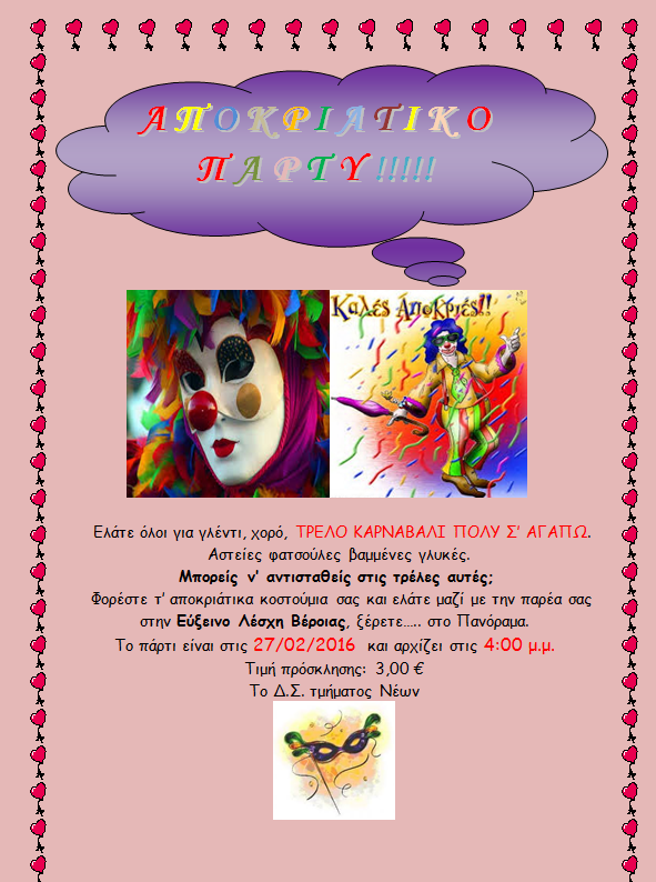 Βέροια Εκδηλώσεις Αποκριάτικο πάρτυ στην Εύξεινο Λέσχη Βέροιας Faretra.info 18/02/2016, 23:08 Share on Facebook Share on Twitter Send with mail Φαρέτρα Αποκριάτικο πάρτυ Εύξεινο Λέσχη Βέροιας Ευξεινος Λέσχη Βέροιας ΣΧΕΤΙΚΑ ΑΡΘΡΑ Δεν υπάρχουν σχετικά άρθρα.