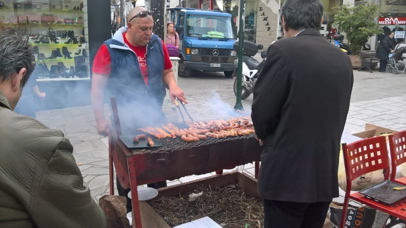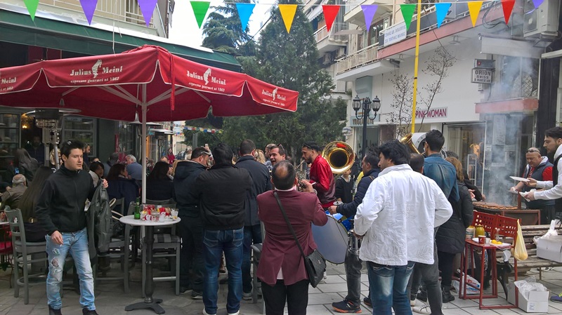 Το πρωί, σε μικρές παρέες στα καφέ της πόλης, όπου η τσίκνα από τις ψησταριές έσμιγε με τους ήχους των περιπλανώμενων χάλκινων. Κυρίως νέοι.