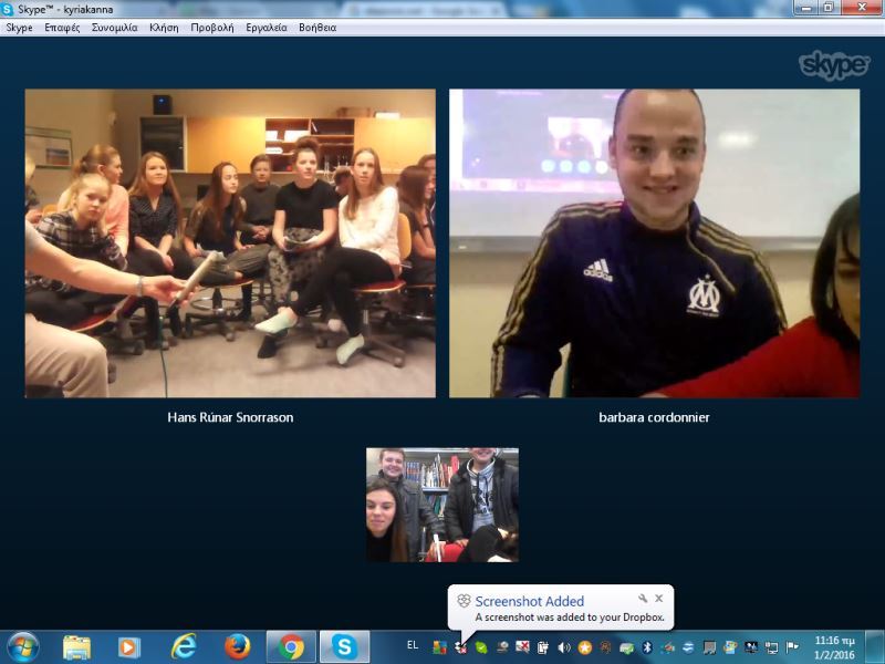 Με γλώσσα εργασίας τα Αγγλικά, οι μαθητές μας πληροφορήθηκαν από τους μακρινούς συμμαθητές και είδαν φωτογραφίες από το Βόρειο Σέλας, από τις παραλίες της Τενερίφης και τα όμορφα Vouziers και Rimini.
