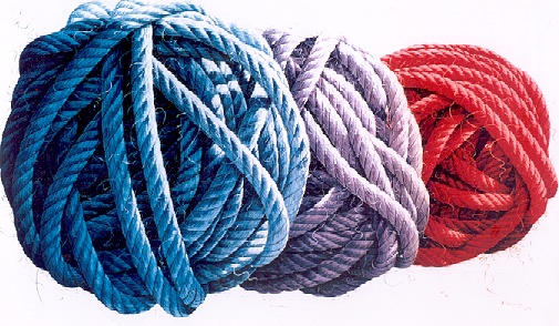 Έτσι έφθασα και στο σχοινί. Έκανα πολλά έργα με το σχοινάκι να συμπληρώνει το κάθε έργο μου, σαν μικρή λεπτομέρεια, καθώς με τραβούσε περίεργα η στριφτή του φόρμα με τα χιλιάδες ξέφτια του, η ισχύς του που σώζει αλλά και μπορεί να σκοτώσει, μια εξουσία που βγαίνει μέσα από την διακριτική του παρουσία. Ίσως, γιατί κι εγώ κάπως έτσι ένιωθα πάντα, σαν μια παρουσία που επεδίωκε, άθελά της, την διακριτική της εμφάνιση στο κοινωνικό της γίγνεσθαι, ενώ μέσα της έκρυβε μια δύναμη που υπήρχε σε λανθάνουσα κατάσταση, διότι το κοινωνικό τέρας του εγωισμού, της αδιαφορίας, της έλλειψης απ