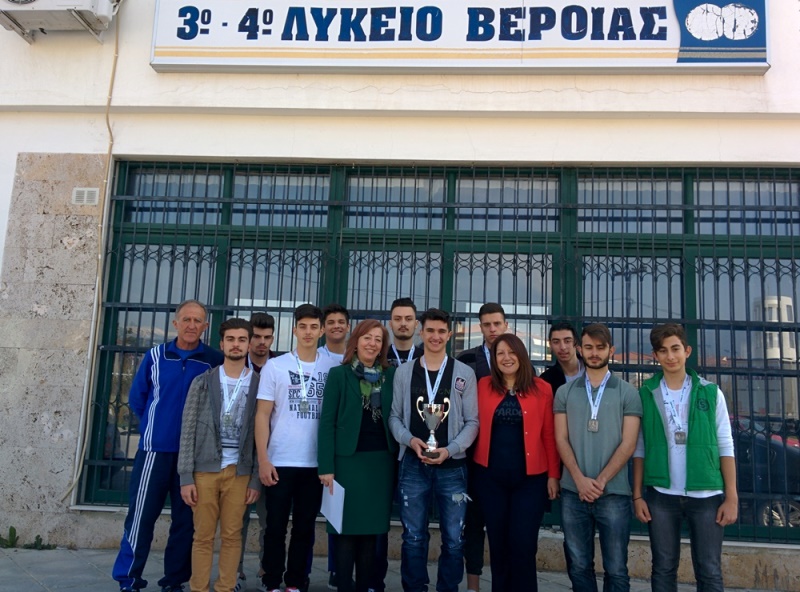πρωταθλήτρια ομάδα καλαθοσφαίρισης του 3ου ΓΕΛ Βέροιας, τη Δευτέρα 21 Μαρτίου 2016 από τη Διευθύντρια Δευτεροβάθμιας Εκπαίδευσης Ημαθίας, κα Αναστασία Μαυρίδου και τον Υπεύθυνο Φυσικής Αγωγής Ημαθίας, κο Χαρίλαο Καμπουρίδη.