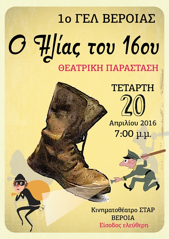 Η Διεύθυνση και ο Σύλλογος Γονέων και Κηδεμόνων του 1ου ΓΕΛ ΒΕΡΟΙΑΣ σας προσκαλούν να τιμήσετε με την παρουσία σας την εκδήλωση της θεατρικής μας ομάδας.