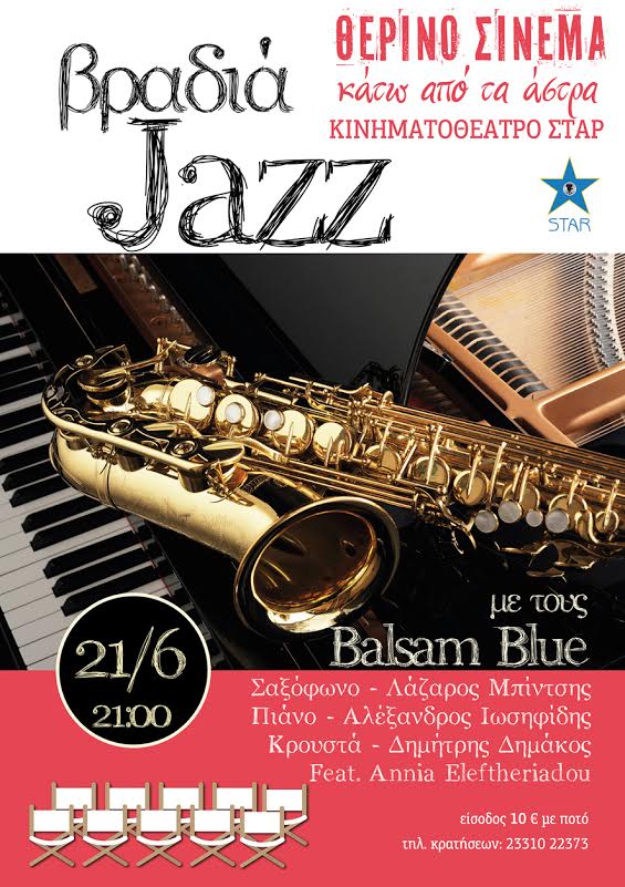 Την Τρίτη 21 Ιουνίου στις 21.00 υποδεχόμαστε τους “Balsam Blue” και την μοναδική Άννια Ελευθεριαδου στον Θερινό πολυχώρο εκδηλώσεων του ΚινηματοΘέατρου ΣΤΑΡ.