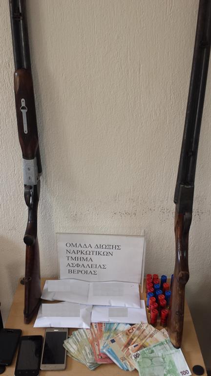 - δύο κυνηγετικές καραμπίνες με 32 φυσίγγια, εκ των οποίων για την μία έχει δηλωθεί κλοπή από περιοχή της Θεσσαλονίκης,