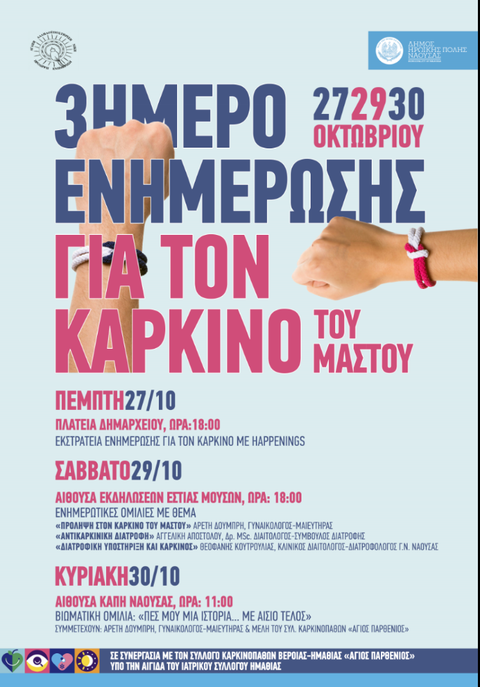 Ειδήσεις με Διάρκεια Νάουσα 3ημερο ενημέρωσης για τον καρκίνο του μαστού στη Νάουσα, 27,29,30 Οκτωβρίου Faretra.info 27/10/2016, 19:57 Share on Facebook Share on Twitter Send with mail Φαρέτρα «Εστία Μουσών καρκίνος μαστού ΣΧΕΤΙΚΑ ΑΡΘΡΑ Δεν υπάρχουν σχετικά άρθρα.