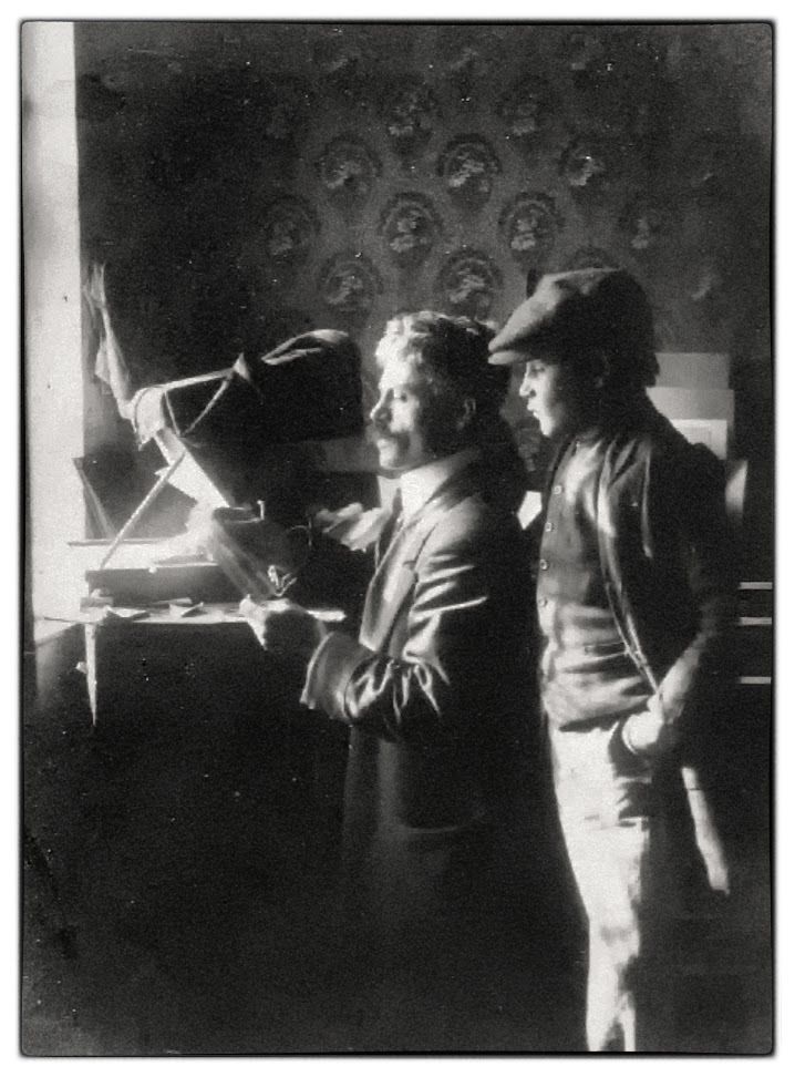 Ο Γιαννάκης Μανάκιας και ο ανιψιός του Γεώργιος Πολυαραίος στην καμπίνα προβολής του κινηματογράφου «ΜΑΝΑΚΙ» στο Μοναστήρι. Φωτογραφία – (καρτ-ποστάλ) που θυμίζει σκηνή από την ιταλική ταινία «Σινέ Παράδεισος».