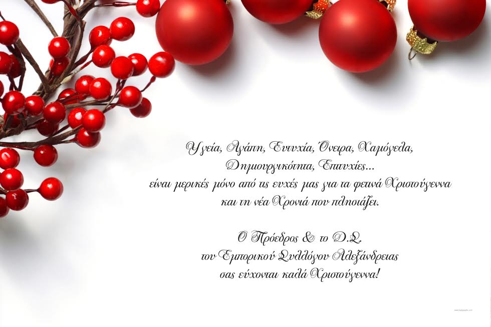Αλεξάνδρεια Τοπικά Ευχές από τον Εμπορικό Σύλλογο Αλεξάνδρειας Faretra.info 19/12/2016, 18:09 Share on Facebook Share on Twitter Send with mail Φαρέτρα Εμπορικός Σύλλογος Αλεξάνδρειας ευχές ΣΧΕΤΙΚΑ ΑΡΘΡΑ Δεν υπάρχουν σχετικά άρθρα.