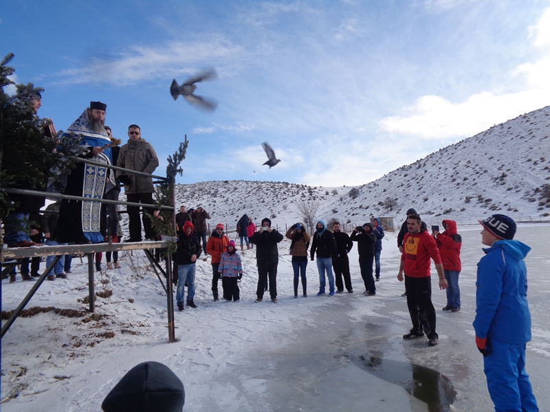 Για μια ακόμη χρονιά ο Στέφανος Πολιτίκος πήρε την ευλογία αφού βούτηξε κυριολεκτικά παγωμένα στα νερά της λίμνης και ανέσυρε το Τίμιο Σταυρό τη στιγμή που το θερμόμετρο έδειχνε -10 βαθμούς Κελσίου.