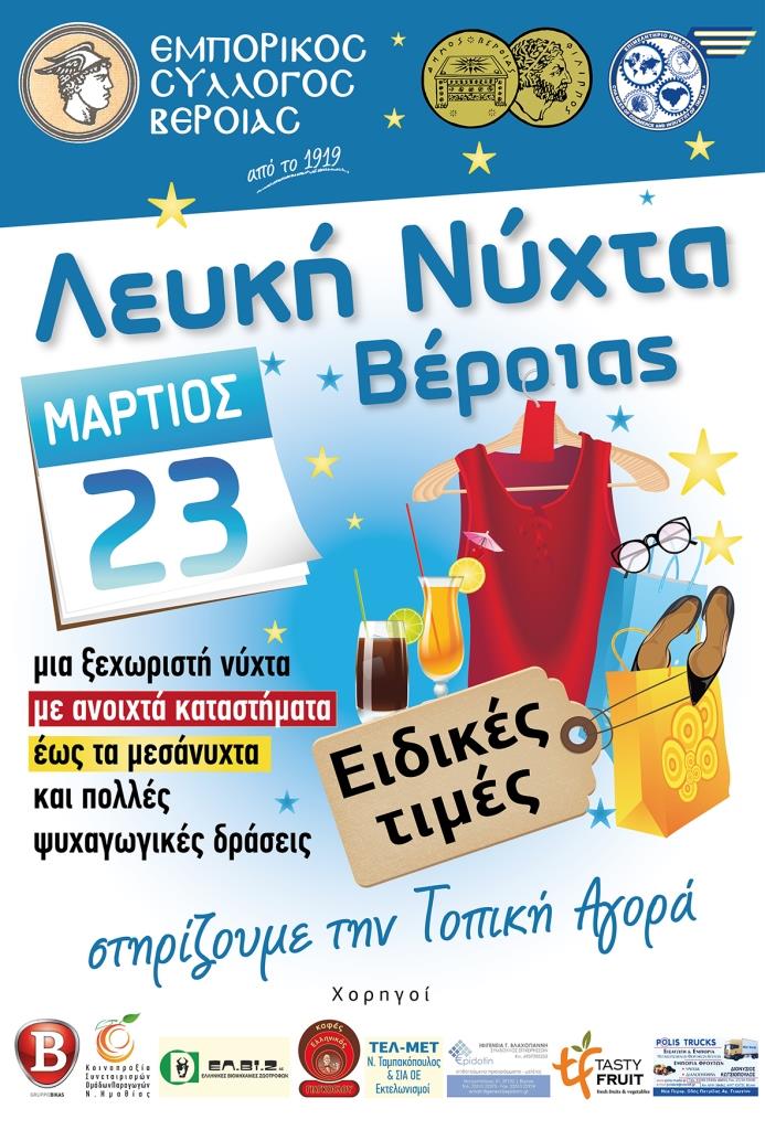 Βέροια Εκδηλώσεις Έμπορικός Σύλλογος Βέροιας. “Λευκή Νύχτα”, Πέμπτη 23 Μαρτίου Faretra.info 18/03/2017, 12:05 Share on Facebook Share on Twitter Send with mail Φαρέτρα Εμπορικός Σύλλογος Βέροιας Λευκή νύχτα ΣΧΕΤΙΚΑ ΑΡΘΡΑ Δεν υπάρχουν σχετικά άρθρα.