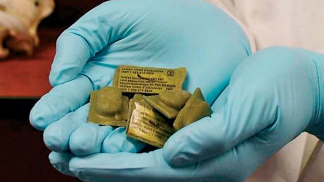Σε περίπτωση εύρεσης τέτοιων εμβολιακών δολωμάτων (μικροί κύβοι χρώματος λαδί-καφέ με οσμή ψαριού), σε αγροτικές, δασώδεις ή κατοικημένες περιοχές ΔΕΝ ΠΡΕΠΕΙ ΝΑ ΤΑ ΑΚΟΥΜΠΑΜΕ Ή ΝΑ ΤΑ ΠΑΤΟΥΜΕ Ή ΝΑ ΕΡΧΟΜΑΣΤΕ ΜΕ ΟΠΟΙΟΔΗΠΟΤΕ ΤΡΟΠΟ ΣΕ ΕΠΑΦΗ ΜΕ ΑΥΤΑ.