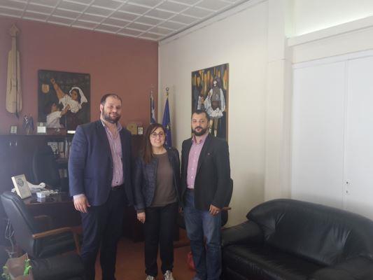 Ο Πρόεδρος του Δ.Σ. του Κοι.Σ.Π.Ε. Ημαθίας “Δεσμός” κ. Γραμματικόπουλος Ηλίας συναντήθηκε σε θερμό και εγκάρδιο κλίμα με τον Δήμαρχο της ηρωικής πόλης της Νάουσας κ. Κουτσογιάννη Νικόλαο και με την Ειδική Σύμβουλο σε θέματα υγείας κ. Αραμπατζή Στέλλα, για να τους ενημερώσει σχετικά με τους Κοινωνικούς Συνεταιρισμούς Περιορισμένης Ευθύνης και να αναπτύξουν συνεργασίες με τον Δήμο Νάουσας σε θέματα κοινωνικής πολιτικής και ενσωμάτωσης στην εργασία των ευπαθών ομάδων πληθυσμού με σοβαρά ψυχοκοινωνικά προβλήματα.