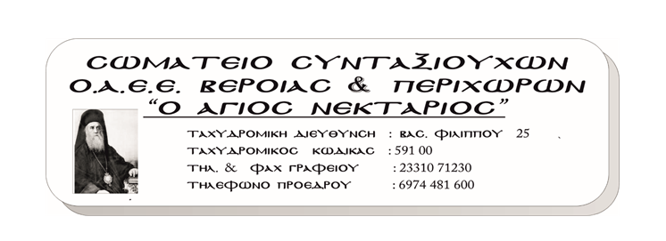 Η νέα σύνθεση του ΔΣ του Σωματείου Συνταξιούχων ΟΑΕΕ Βέροιας και Περιχώρων “Ο Άγιος Νεκτάριος”