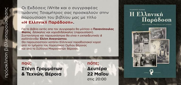 Βέροια Γιάννης Τσιαμήτρος “Η Ελληνική Παράδοση”. Παρουσίαση βιβλίου στη Βέροια, Δευτέρα 22 Μαΐου Faretra.info 17/05/2017, 21:46 Share on Facebook Share on Twitter Send with mail Στην παρουσίαση του βιβλίου θα γίνει και παράσταση ελληνικών παραδοσιακών χορών από τον Χορευτικό Όμιλο Βέροιας και το Σύλλογο Μικρασιατών Βέροιας με διοργανωτή τον Χορευτικό Όμιλο Βέροιας. Φαρέτρα Βιβλιοπαρουσίαση Γιάννης Τσιαμήτρος ΣΧΕΤΙΚΑ ΑΡΘΡΑ Δεν υπάρχουν σχετικά άρθρα.