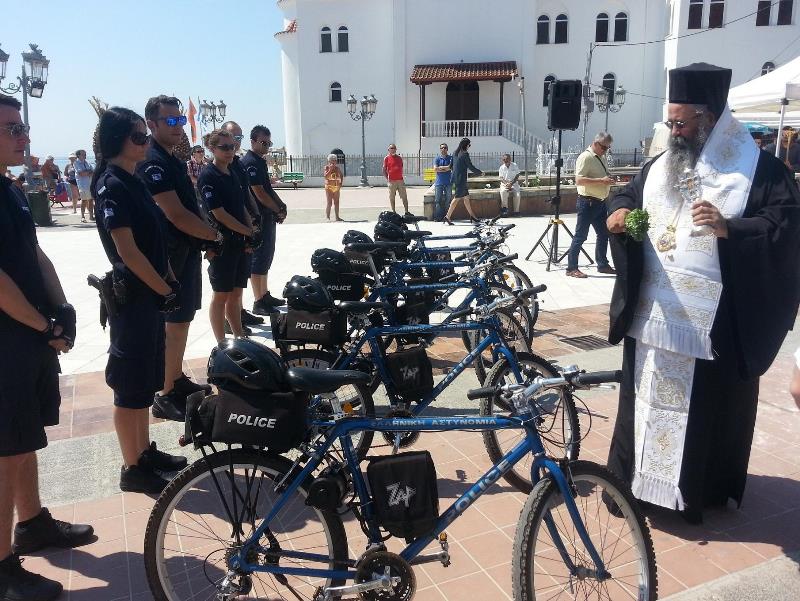 Επεκτείνεται και στην Κατερίνη ο θεσμός της αστυνόμευσης με ηλεκτροκίνητα ποδήλατα, με στόχο την ενίσχυση της εμφανούς αστυνόμευσης και την ταχύτερη εξυπηρέτηση των πολιτών και τουριστών.