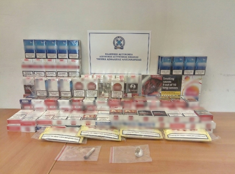 Συνελήφθη χθες (2-6-2017) το πρωί σε περιοχή της Ημαθίας, από αστυνομικούς του Τμήματος Ασφάλειας Αλεξάνδρειας, ένας 27χρονος ημεδαπός, διότι σε έρευνα που πραγματοποιήθηκε στην οικία του βρέθηκαν σε αυτή αλλά και σε εξωτερικό της χώρο με τη συνδρομή αστυνομικού σκύλου της Διεύθυνσης Αστυνομίας Χαλκιδικής, συνολικά 191 πακέτα λαθραίων τσιγάρων, 4 συσκευασίες αδασμολόγητου καπνού, μικροποσότητα κάνναβης και ένα αυτοσχέδιο τσιγάρο κάνναβης.