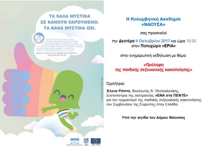 Εκδηλώσεις Νάουσα K. Α. “ΝΑΟΥΣΑ”. Eκδήλωση με θέμα “Πρόληψη της παιδικής σεξουαλικής κακοποίησης”, Πολυχώρος «ΕΡΙΑ» Faretra.info 02/10/2017, 23:20 Share on Facebook Share on Twitter Send with mail Φαρέτρα Εκδήλωση Κ.Α ΝΑΟΥΣΑ σεξουαλική κακοποίηση ΣΧΕΤΙΚΑ ΑΡΘΡΑ Δεν υπάρχουν σχετικά άρθρα.