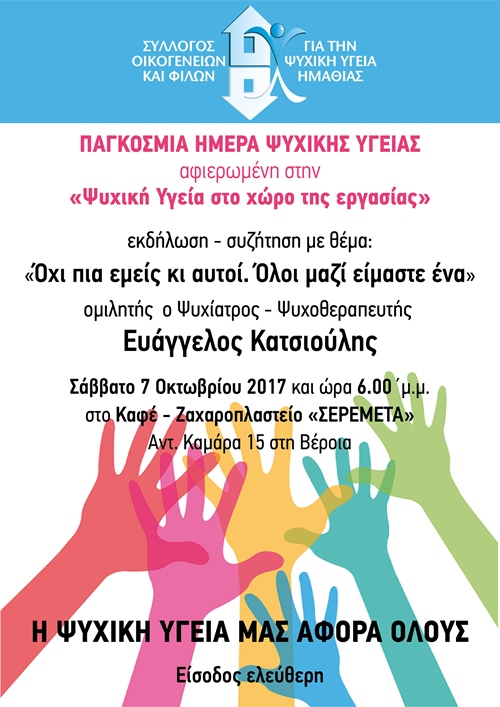 Βέροια Τοπικά ΣΟΦΨΥ Ημαθίας: Εκδήλωση με αφορμή την Παγκόσμια Ημέρα Ψυχικής Υγείας, Σάββατο 7 Οκτωβρίου Faretra.info 04/10/2017, 10:41 Share on Facebook Share on Twitter Send with mail Φαρέτρα ΣΟΦΨΥ Ημαθίας Ψυχίατρος Ψυχική Υγεία ΣΧΕΤΙΚΑ ΑΡΘΡΑ Δεν υπάρχουν σχετικά άρθρα.
