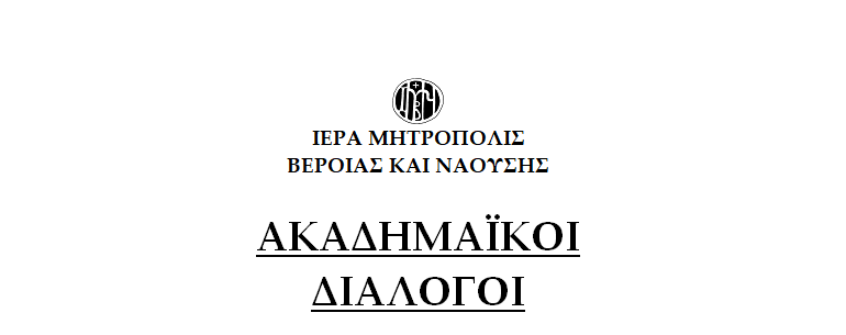 Τὴν Κυριακὴ 12 Νοεμβρίου 2017 στὶς 7 τὸ ἀπόγευμα στὸ Πνευματικὸ Κέντρο τῆς Ἱερᾶς μας Μητροπόλεως (Βενιζέλου 29, 1ος ὄροφος) ὁμιλητής στούς «Ἀκαδημαϊκούς Διαλόγους» θὰ εἶναι ὁ καθηγητής τῆς Θεολογικῆς Σχολῆς τοῦ Πανεπιστημίου Θεσσαλονίκης, κ. Στογιαννίδης Ἀθανάσιος, ὁ ὁποῖος θὰ ἀναπτύξῃ τὸ θέμα: