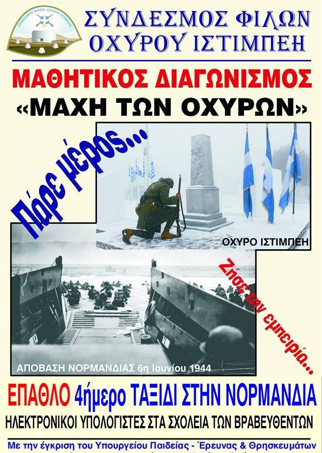 Ο Μαθητικός Διαγωνισμός με θέμα “Η ΜΑΧΗ ΤΩΝ ΟΧΥΡΩΝ” βρίσκεται ήδη σε εξέλιξη.