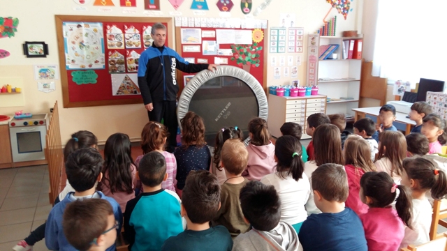 Οι μικροί μαθητές είχαν την ευκαιρία μέσα από προβολή βίντεο να γνωρίσουν ποια είναι τα αντρικά και ποια τα γυναικεία αγωνίσματα της ΕΝΟΡΓΑΝΗΣ ΓΥΜΝΑΣΤΙΚΗΣ. Ακόμη παρακολούθησαν στιγμιότυπα από αγώνες ακροβατικού τραμπολίνο, διπλού μίνι τραμπολίνο και ακροβατικού διαδρόμου και είχαν την ευκαιρία να δοκιμάσουν τις δυνάμεις τους σε απλές ασκήσεις στο μίνι τραμπολίνο, με τη βοήθεια πάντοτε του προπονητή της Ενόργανης Γυμναστικής κ. Χρήστου Ζάλιου.