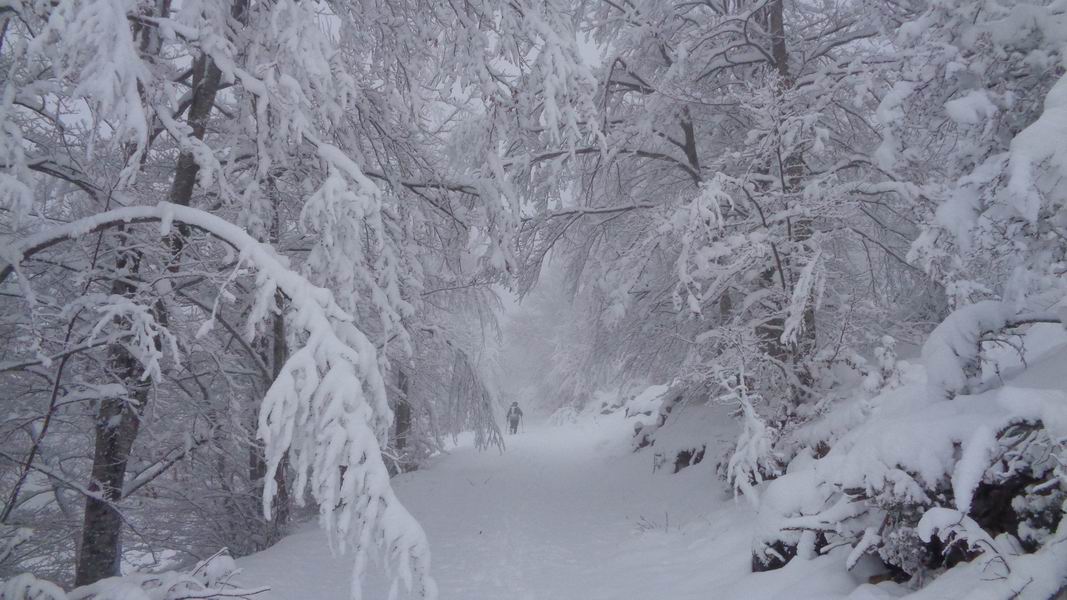 Αφήσαμε πίσω μας τις κτιριακές εγκαταστάσεις του Αποχιονιστικού Σταθμού και μπήκαμε στο χιονισμένο δάσος οξυάς (φωτ. 11, 12).
