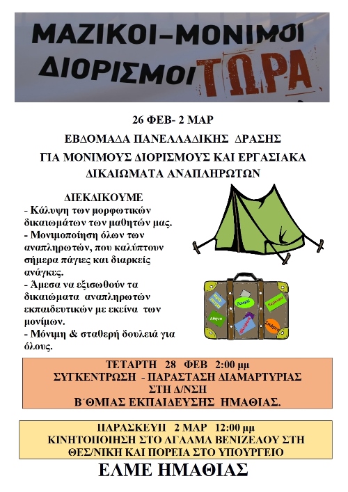 Εκδηλώσεις Τοπικά ΕΛΜΕ Ημαθίας: Εβδομάδα πανελλαδικής δράσης για μόνιμους διορισμούς στην Εκπαίδευση Faretra.info 17/02/2018, 21:41 Share on Facebook Share on Twitter Send with mail Φαρέτρα ΕΛΜΕ Ημαθίας ΣΧΕΤΙΚΑ ΑΡΘΡΑ Δεν υπάρχουν σχετικά άρθρα.