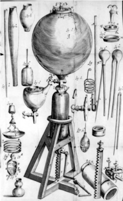 | Η αντλία που σχεδίασε ο Χουκ, όπως παρουσιάζεται στο βιβλίο του Robert Boyle “New Experiments, Physico-Mechanicall” (1660). |