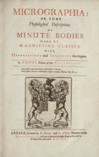 | Το εξώφυλλο του βιβλίου Micrographia. Έκδοση τον Ιανουάριο 1665 από την Royal Society του Λονδίνου. |