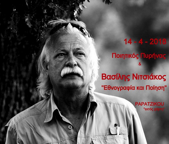 ο Ποιητικός Πυρήνας παρουσιάζει τον Καθηγητή Κοινωνικής Λαογραφίας του Πανεπιστημίου Ιωαννίνων, Βασίλη Νιτσιάκο με θέμα εκδήλωσης ΄’Εθνογραφία και Ποίηση”.