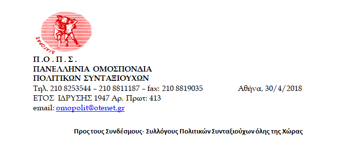 Η παρακράτηση αυτή, υπενθυμίζουμε, αφορά πολιτικούς συνταξιούχους που ελάμβαναν μηνιαία επικουρική σύνταξη άνω των 300,01 ευρώ ακαθάριστη, η οποία παύει πλέον να ισχύει.