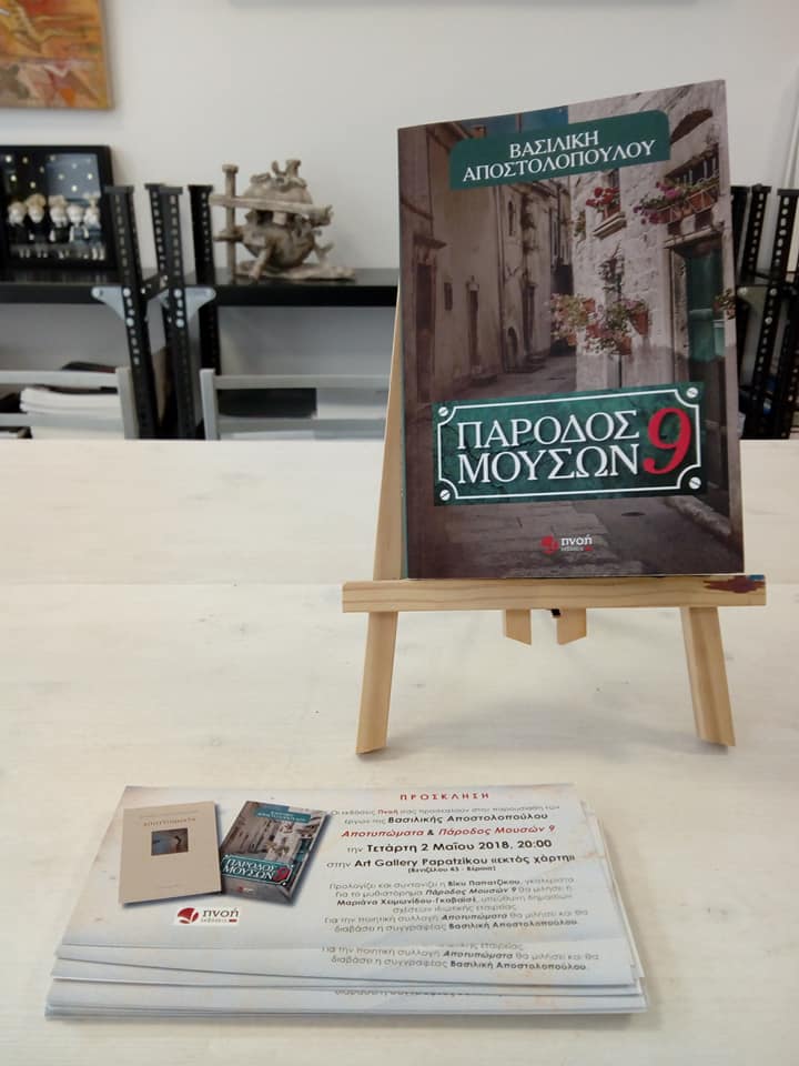 Βιβλιοπαρουσιάσεις. Βασιλικής Αποστoλοπούλου “Αποτυπώματα” και “Πάροδος Μουσών 9”, Τετάρτη 2 Μαΐου
