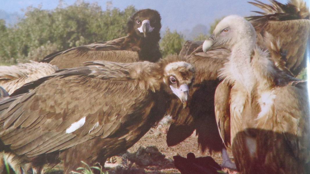 Οι συνοδοί μάς παρέπεμψαν να κοιτάξουμε μέσα από τα τηλεσκόπια, τα οποία ήταν ρυθμισμένα και σκόπευαν πάνω σε ένα βιολογικά νεκρό κωνοφόρο στα κλαδιά του οποίου κάθονταν δύο αρπακτικά. Πιο πάνω από αυτά γυροπετούσαν άλλα δύο, που μπορέσαμε να τα διακρίνουμε με γυμνό μάτι (φωτ. 24) .