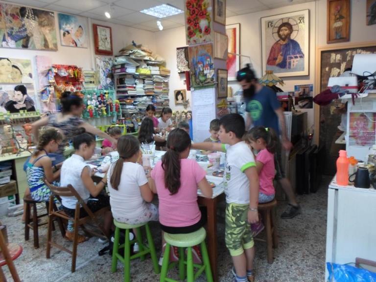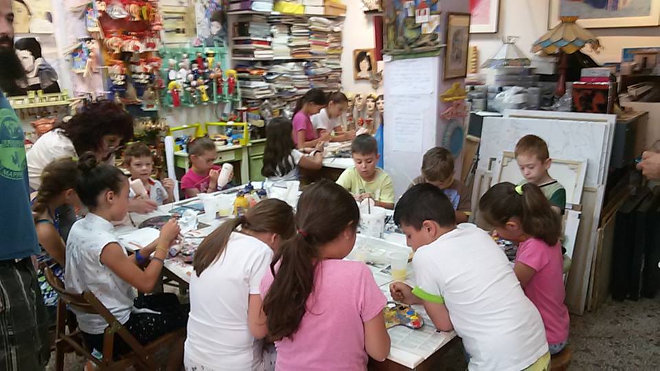 Την Παρασκευή 15 Ιουνίου 2018, στο εργαστήρι της κ. Κωνσταντίας οι μικροί καλλιτέχνες παρουσίασαν τα έργα που φιλοτέχνησαν όλη την χρονιά στους φίλους τους. Παράλληλα οι μικροί δημιουργοί συμμετείχαν και «δίδαξαν» μαζί με την κυρία Κωνσταντία την Δέσποινα και τον Σταύρο. Το εργαστήρι όπου καλέστηκαν να δημιουργήσουν ήταν μαριονέτες με ανακυκλωμένα υλικά με θέμα “Τον Πόλεμο και την Ειρήνη”. Τα ερωτήματα που τέθηκαν είναι : Πώς μπορεί να είναι ο πόλεμος ή η Ειρήνη.