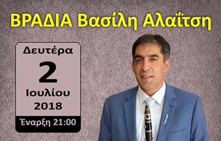 Ο Σύλλογος Μικρασιατών Ημαθίας, με αυτογνωσία του καθήκοντος προς τον πολιτισμό και με αισθήματα τιμής και αναγνώρισης της προσφοράς των συνεργατών του προς τον σύλλογο, διοργανώνει την «ΒΡΑΔΙΑ ΒΑΣΙΛΗ ΑΛΑΪΤΣΗ» προς τιμήν του αδικοχαμένου φίλου και συνεργάτη μουσικού Βασίλη Αλαΐτση.
