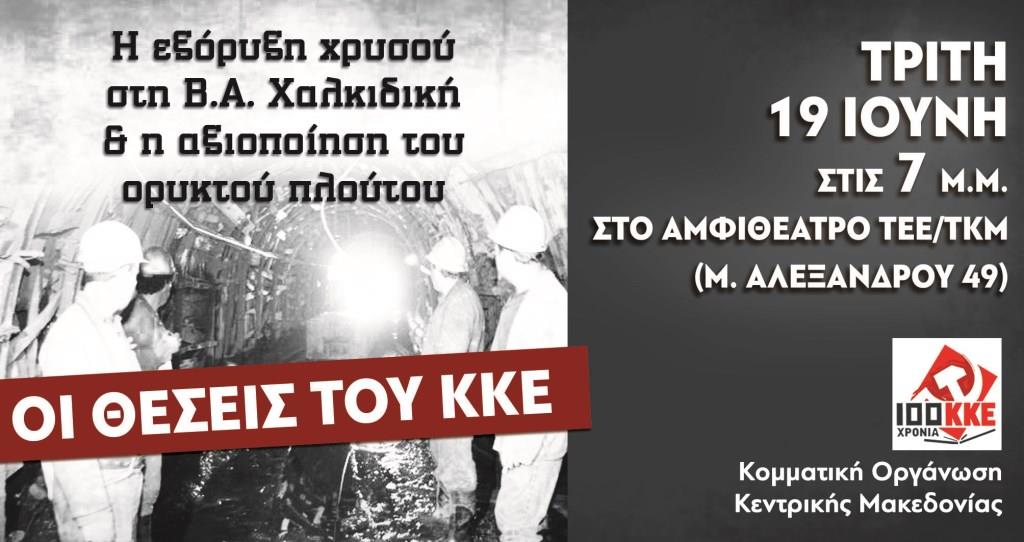 Εκδήλωση του ΚΚΕ “Η εξόρυξη χρυσού στη Β.Α. Χαλκιδική και η αξιοποίηση του ορυκτού πλούτου. Οι θέσεις του ΚΚΕ”