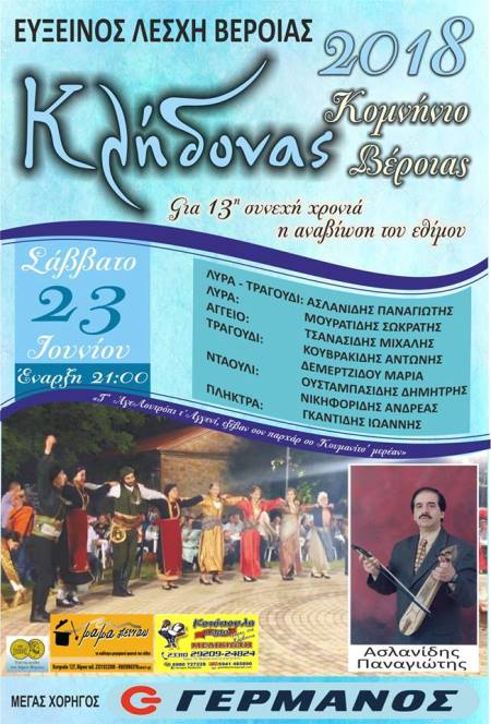 Εύξεινος Λέσχη Βέροιας: ΚΛΗΔΟΝΑΣ 2018 – Κομνήνιο, Σάββατο 23 Ιουνίου