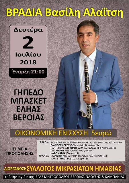 “Βραδιά Βασίλη Αλαΐτση” από τον Σύλλογο Μικρασιατών Ημαθίας