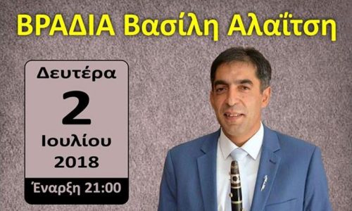 “Βραδιά Βασίλη Αλαΐτση” από τον Σύλλογο Μικρασιατών Ημαθίας