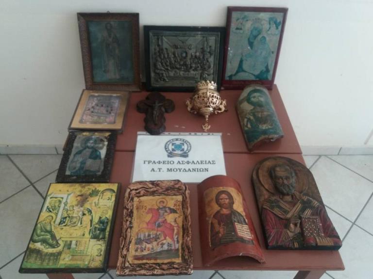 Από το Αστυνομικό Τμήμα Μουδανιών σχηματίσθηκε δικογραφία σε βάρος 31χρονου ημεδαπού, διότι όπως προέκυψε από την έρευνα, το προηγούμενο διάστημα αφαίρεσε από παρεκκλήσι σε περιοχή της Χαλκιδικής, 10 θρησκευτικές εικόνες και ένα καντήλι, τα οποία βρέθηκαν στην οικία του και κατασχέθηκαν.
