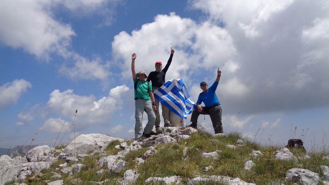 «Ντύσαμε» το τριγωνομετρικό κολωνάκι της κορυφής με τη γαλανόλευκη σημαία μας και βγάλαμε την αναμνηστική φωτογραφία (φωτ. 60).