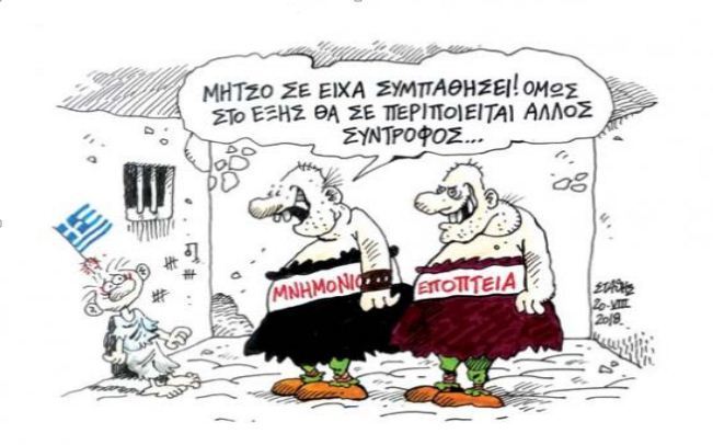 Σε έναν εξαιρετικά θλιβερό θεόθεν συμβολισμό, η Ελλάδα, μετά τα οκτώ χρόνια των Μνημονίων, βγαίνει στα αποκαΐδια στο Μάτι – αποκαΐδια και η ίδια. Βγαίνει ναυάγιο στη Μάνδρα – σκυλοπνιγμένη κι αλαλιασμένη…