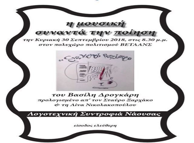Νάουσα Πολιτισμός Δραστηριοποιείται η Λογοτεχνική Συντροφιά στη Νάουσα Faretra.info 20/09/2018, 10:47 Share on Facebook Share on Twitter Send with mail Φαρέτρα Λογοτεχνική Συντροφιά Νάουσας Ποίηση ΣΧΕΤΙΚΑ ΑΡΘΡΑ Δεν υπάρχουν σχετικά άρθρα.
