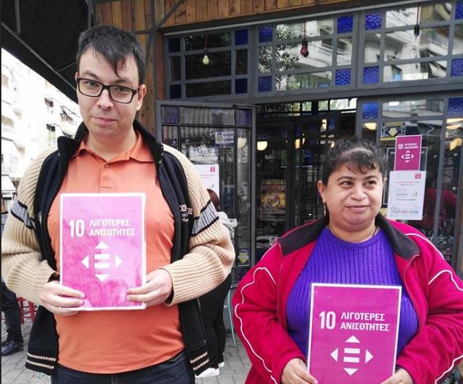 Τα «Παιδιά της Άνοιξης» επέλεξαν το στόχο με τον αριθμό 10 που αφορά στις λιγότερες ανισότητες και σχεδίασαν μια δράση που αποσκοπεί σε αυτό. Ο τίτλος της δράσης Εργασιακά δικαιώματα ΑμεΑ «Μπορώ και εγώ». Συγκεκριμένα, δύο Άτομα με Αναπηρία επιλέχθηκαν και εργάστηκαν για 2 ώρες στο γνωστό μεζεδοπωλείο-ουζερί της Βέροιας «Στάσου Μύγδαλα» ενώ, μία μικρή ομάδα ωφελούμενων έξω από το μαγαζί ενημέρωνε τον κόσμο για τη δράση καθώς και για το δικαίωμα στην εργασία.
